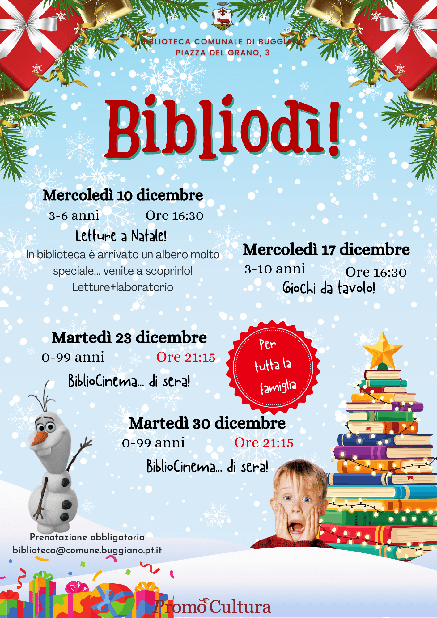 To book, please contact the Buggiano Library by phone or email: biblioteca@comune.buggiano.pt.it