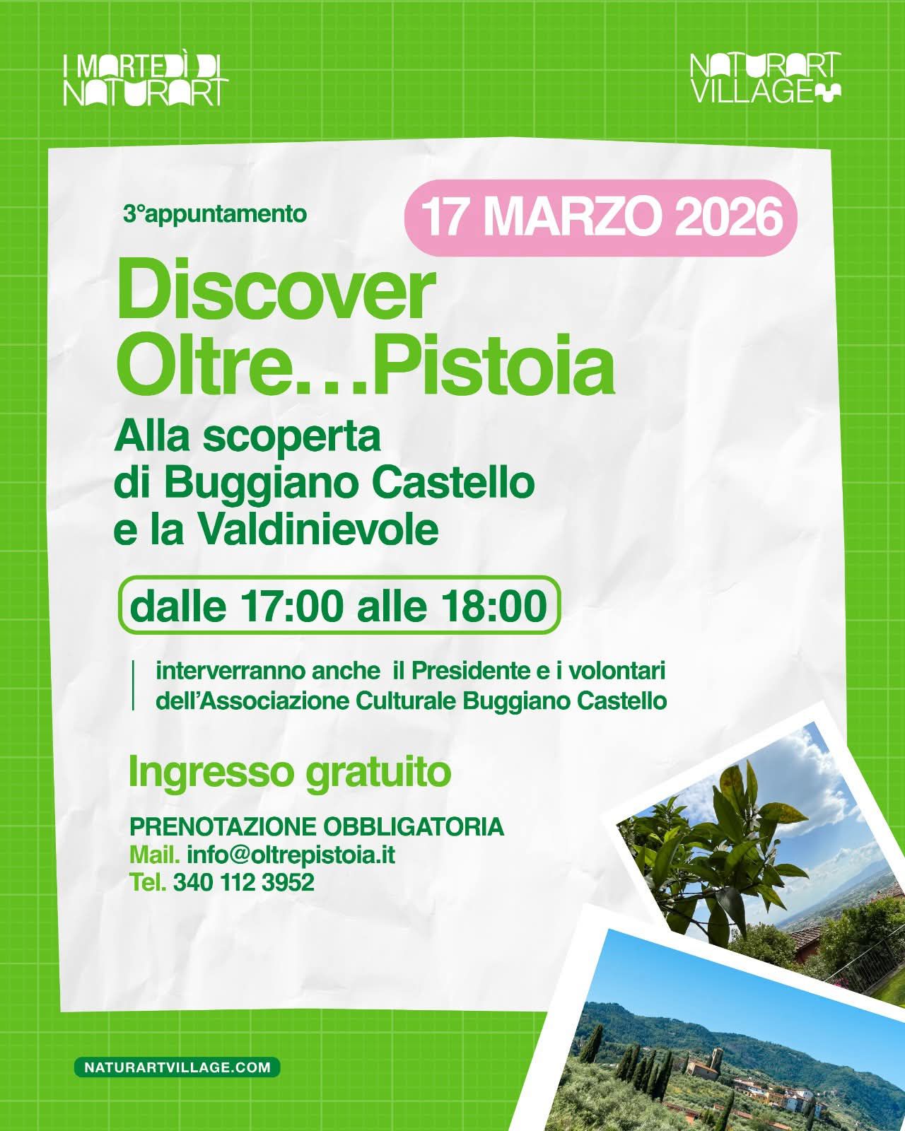 3°appuntamento “Discover Oltre…Pistoia” alla scoperta di Buggiano Castello e della Valdinievole presso il Naturart Village di Pistoia.